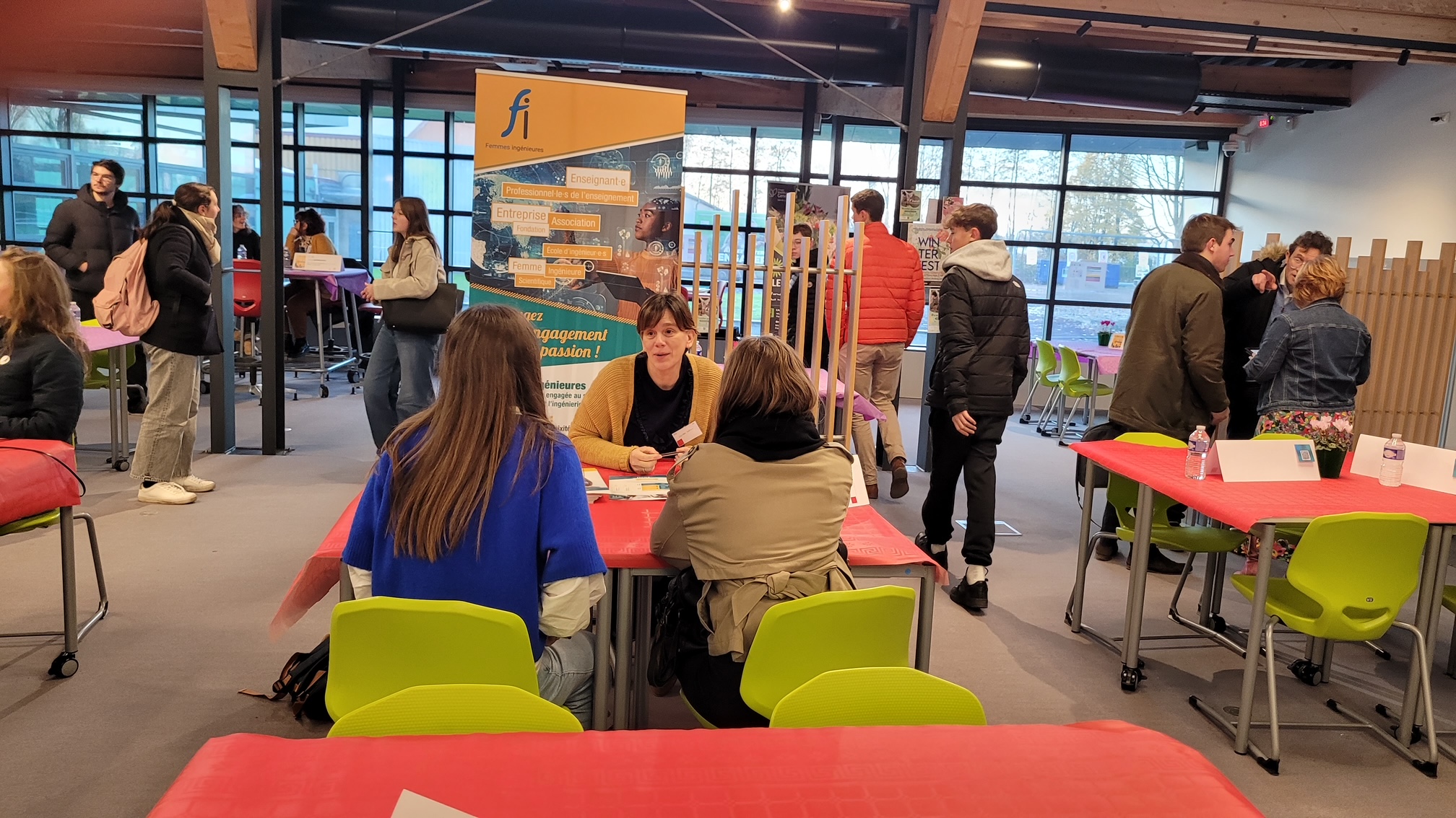 Le 21 novembre 2025, l'association Femmes Ingénieures avait son stand au Forum des métiers de l'institut de Genech. Anne-Marie Jolly, Audrey Robakowski et Caroline Chopin se sont relayées pour présenter et/ou faire découvrir aux jeunes lycéennes, les métiers ainsi que le parcours d'études d'une Ingénieure, 25 jeunes filles sont venues discuter avec nous, surtout pour découvrir les métiers qu'une ingénieure pouvait exercer !
