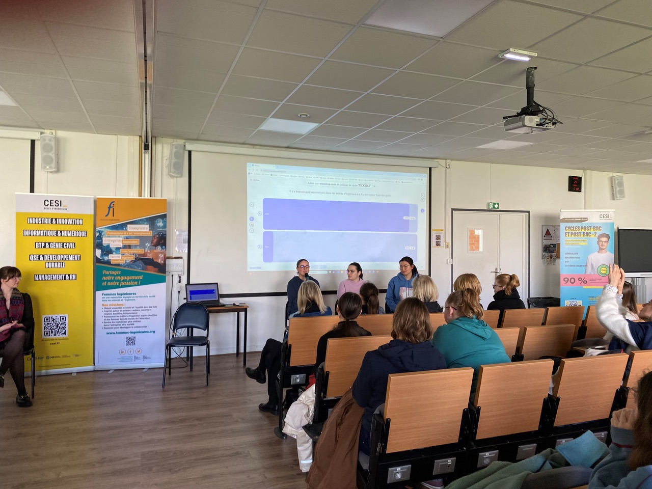 Le 16 mars à l'Ecole Centrale Lille à Villeneuve d'Ascq et le 23 mars au CESI à Arras se sont tenues les désormais traditionnelles matinées "Ingénieure au féminin". Cette année, ce sont 164 lycéennes de seconde ou première accompagnées de leurs parents ou de leurs enseignant.e.s qui sont venues écouter les témoignages des élèves ingénieures puis des femmes ingénieures ainsi que l'introduction de l'évènement par le rectorat de Lille. Nos témoins ont su par leur enthousiasme, convaincre ces lycéennes de l'intérêt du métier d'ingénieure.