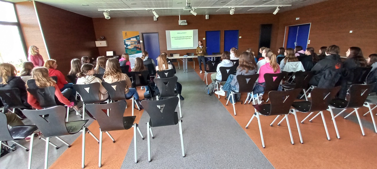 Après avoir rencontré les élèves de 2nde et première l'an dernier, c'était au tour des jeunes filles de quatrième et troisième de découvrir les métiers et études d'ingénieur. 70 élèves toutes volontaires ont participé à notre intervention le 9 février. La professeure de mathématiques présente pendant notre présentation a bien complété nos messages en expliquant le poids des stéréotypes de genre et l'équipe de direction de la cité Dupleix est passée pour dire aux filles combien il est important de ne pas limiter ses choix lors de l'orientation et d'oser aller vers des études scientifiques/techniques. Nous retrouverons la professeure de mathématiques avec une dizaine de jeunes filles de seconde et première le 16 mars prochain pour notre matinée Ingénieure au féminin à Centrale Lille. C'est un plaisir d'être accueillie dans un établissement si mobilisé pour l'égalité fille-garçon. Merci à Isabelle Boullery pour son intervention.