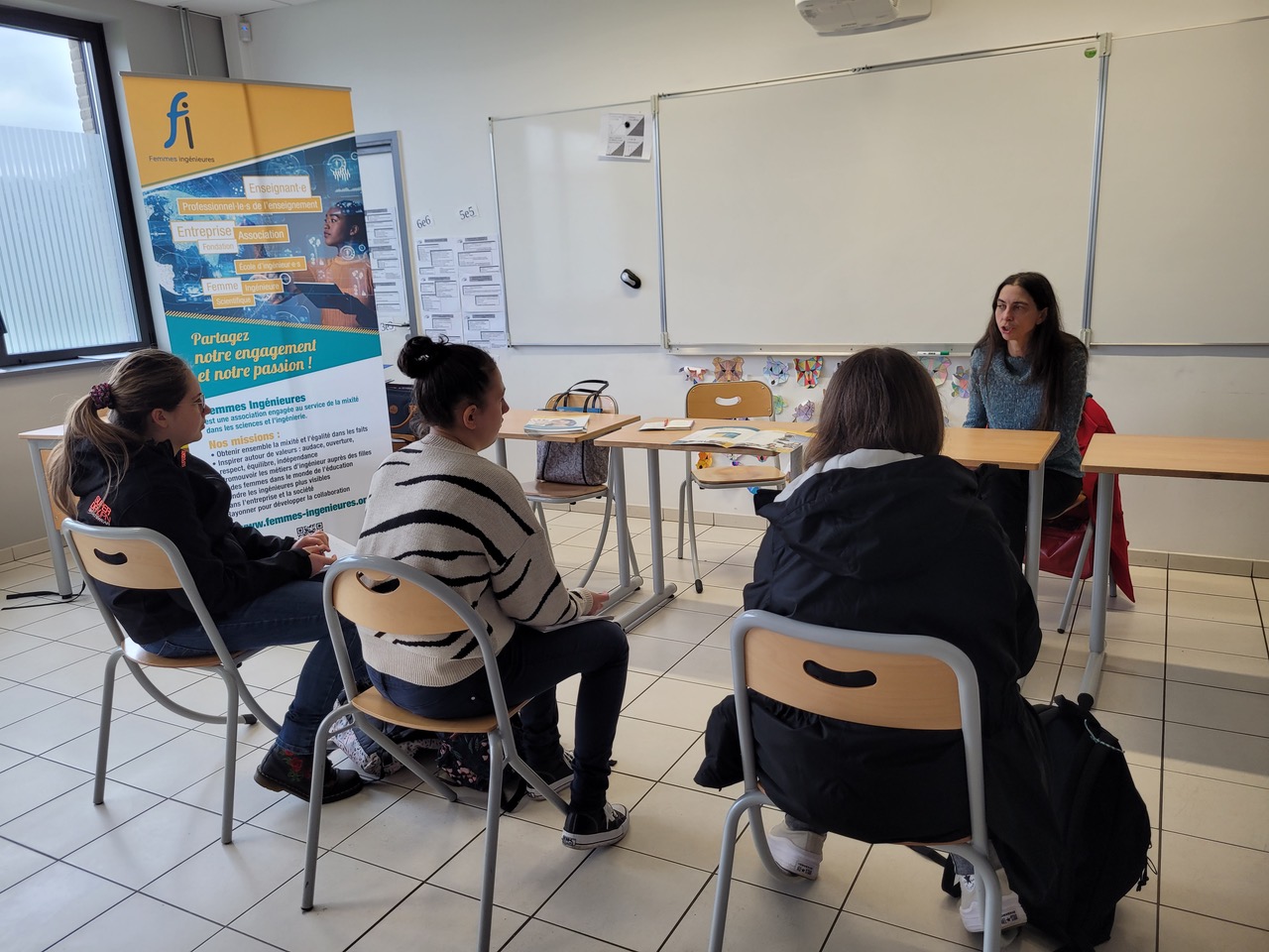 Le collège Théodore Monod de Lesquin apprécie les interventions de Femmes Ingénieures et nous sollicite chaque année. Le 26 janvier dernier, nous avons rencontré 18 jeunes filles de 3° à qui nous avons fait partager la passion de notre métier. Merci à Anouk Beaufumé et Sophie de Kermel pour leur intervention.