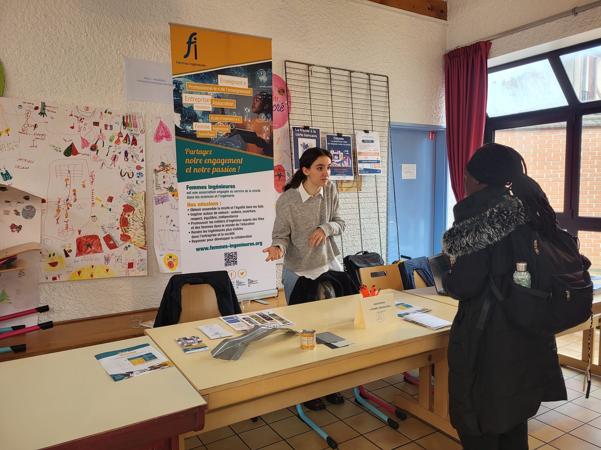 Femmes ingénieures y avait un stand, durant les deux premiers jours des groupes d’une dizaine de collégiens et lycéens se sont succédé toutes les 20 minutes.