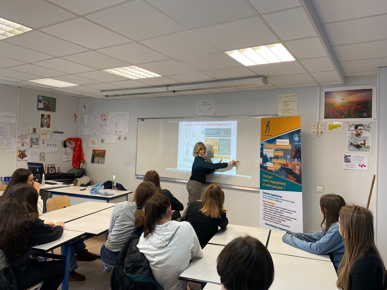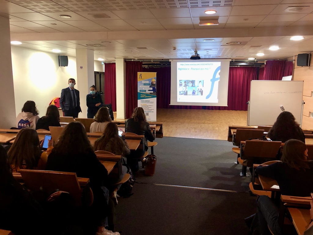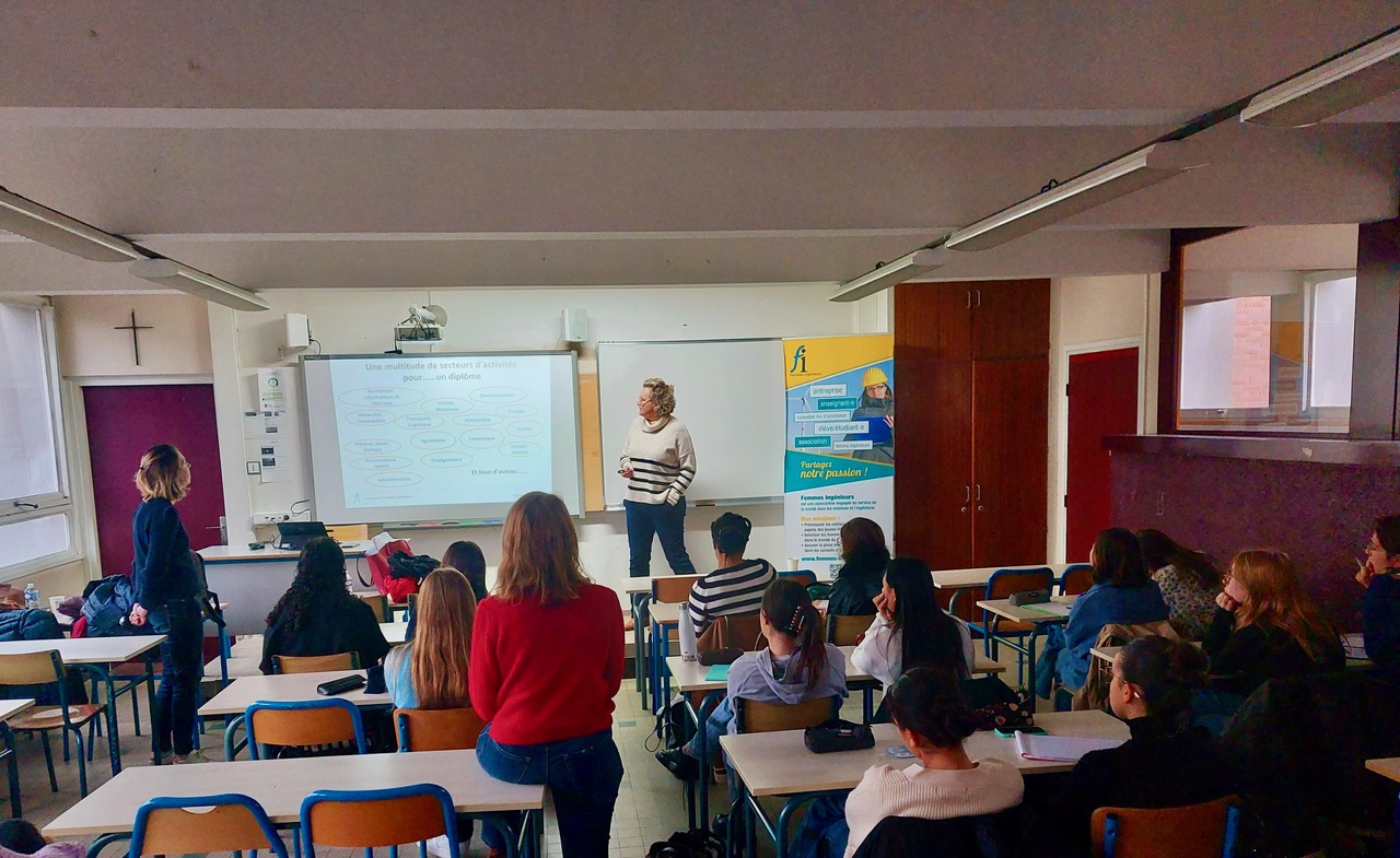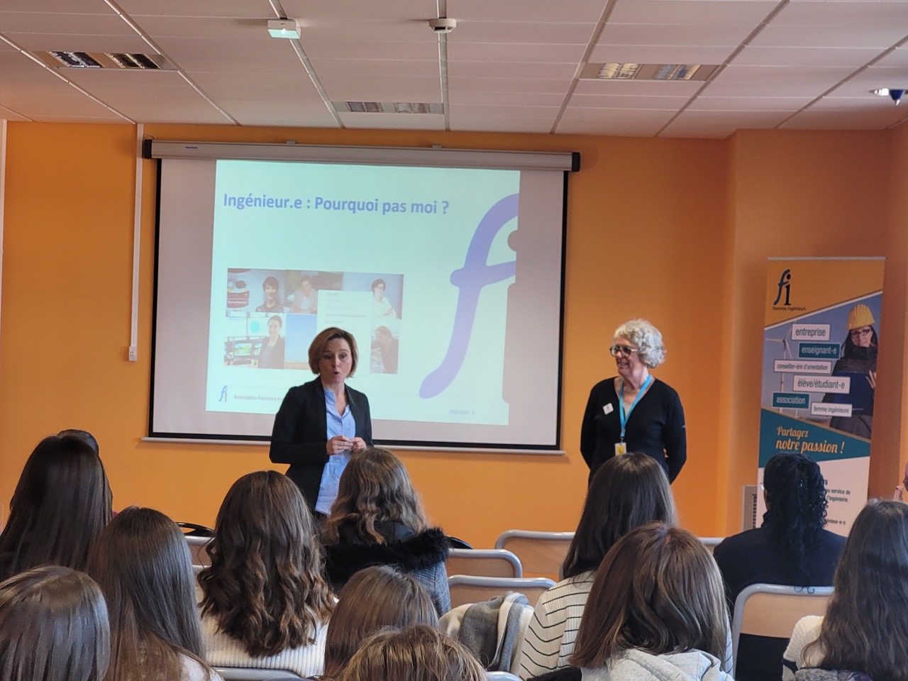 Le lycée organisait le 20 décembre, la deuxième édition du forum « Ingénieure et m [♀] ︎i » destiné aux jeunes filles de seconde souhaitant s’orienter vers les métiers scientifiques et de l’ingénierie afin de démystifier ces professions. Après des témoignages le matin, dont celui de notre représentante Anne-Marie Jolly qui a montré comment une ingénieure peut avoir une carrière de scientifique, des tables rondes ont été organisées l'après-midi sur différentes thématiques: