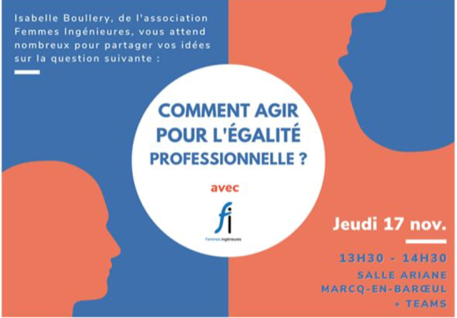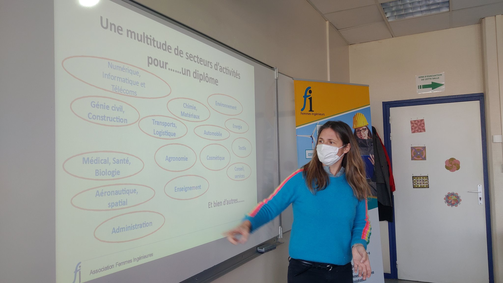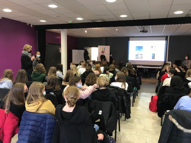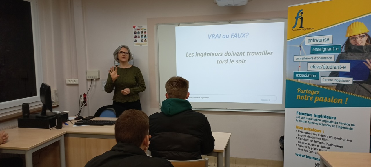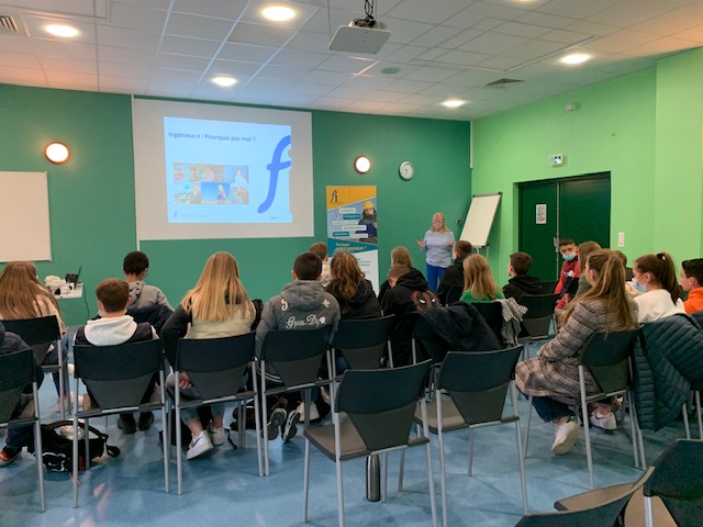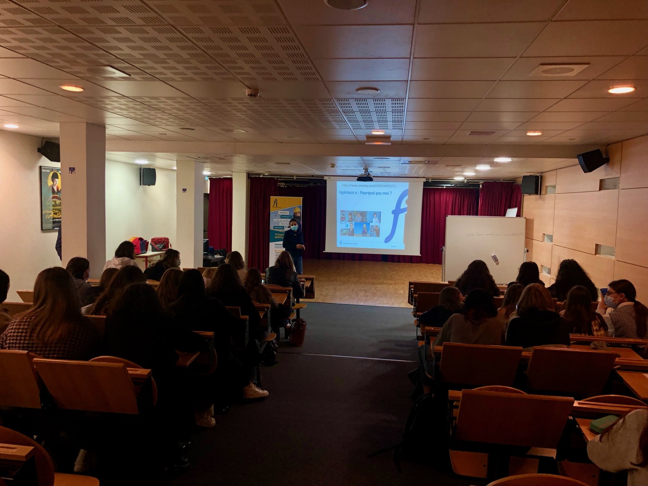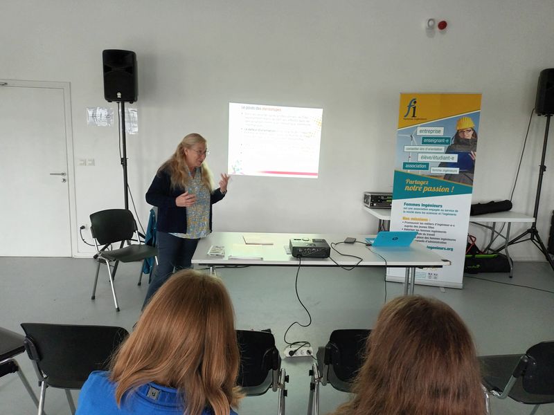 Le lycée organisait le 20 décembre, la deuxième édition du forum « Ingénieure et m [♀] ︎i » destiné aux jeunes filles de seconde souhaitant s’orienter vers les métiers scientifiques et de l’ingénierie afin de démystifier ces professions. Après des témoignages le matin, dont celui de notre représentante Anne-Marie Jolly qui a montré comment une ingénieure peut avoir une carrière de scientifique, des tables rondes ont été organisées l'après-midi sur différentes thématiques: