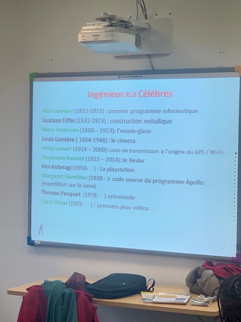 ✨ Deux ingénieures de l'Association Femmes Ingénieures, Eugénie et Corinne, ont partagé une présentation, en appuyant leur passion pour leurs métiers respectifs, ont expliqué leur quotidien, leurs parcours d'études, devant des collégiens attentifs, qui n'ont pas hésité à intervenir et surtout à prendre des flyers ! 👏