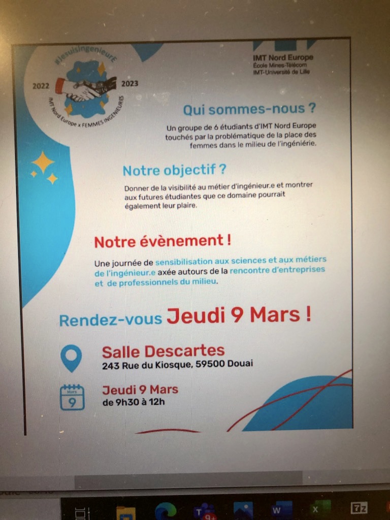 Les 22 et 23 novembre, notre association était présente aux forums de l'institut de Genech et du collège Saint Exupéry de Roubaix. L'occasion d'informer une centaine de jeunes sur le métier et les études d'ingénieur.e.s en espérant que les graines semées germeront ! Un grand merci à nos bénévoles : Sabrina Couteau, Audrey Robakowski, Paola Pellegrini et Margaux Gadroy