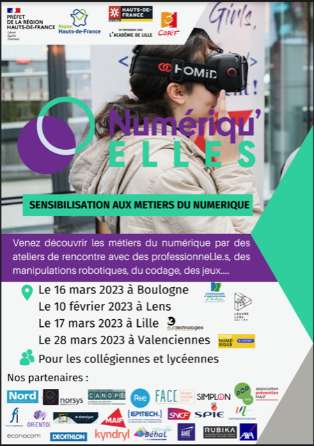 « Ce vendredi 22 novembre, l’Association Femmes ingénieures était présente au forum NumériquElles d’Amiens, avec cette année le soutien financier de la WLCorporateFoundation pour l’acquisition de petit matériel, afin de présenter aux collégiennes et lycéennes de façon ludique la grande variété des métiers du Numérique.