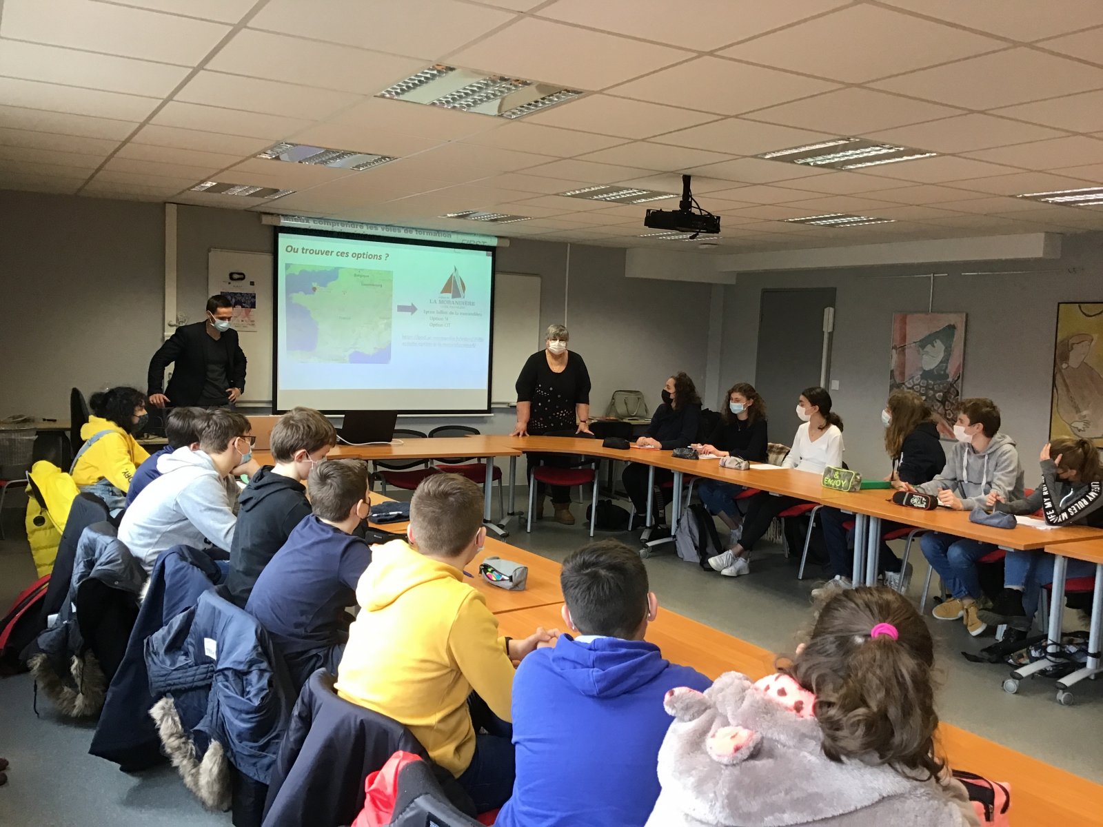 Jeudi 3 février, 22 élèves des classes de 4e et de 3e ont rencontré au collège Mme Florence Ferry, dans le cadre des « Cordées de la réussite », dispositif d’information sur l’orientation pour le parcours « Avenir » et mise en œuvre d’un projet technique, menés en collaboration avec le collège Le Clos Tardif de Saint-James, en lien avec l’Université de Caen.
