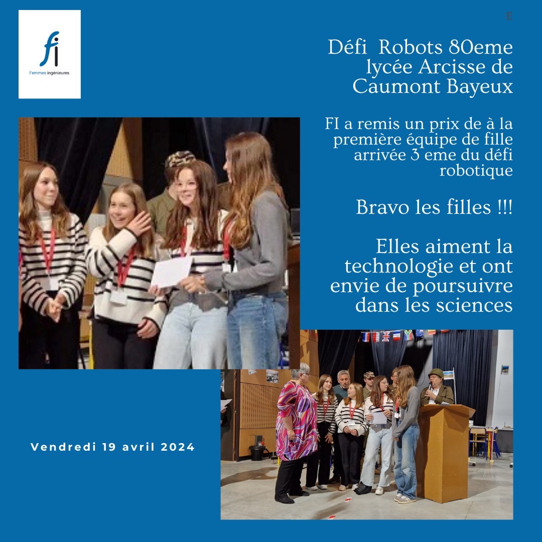 Femmes Ingénieures partenaire du Défi Robotique du Bessin organisé par le lycée Arcisse de Caumont de Bayeux a remis des billets pour un baptême en char à voile à l'équipe qui a fini 2eme du Défi.
