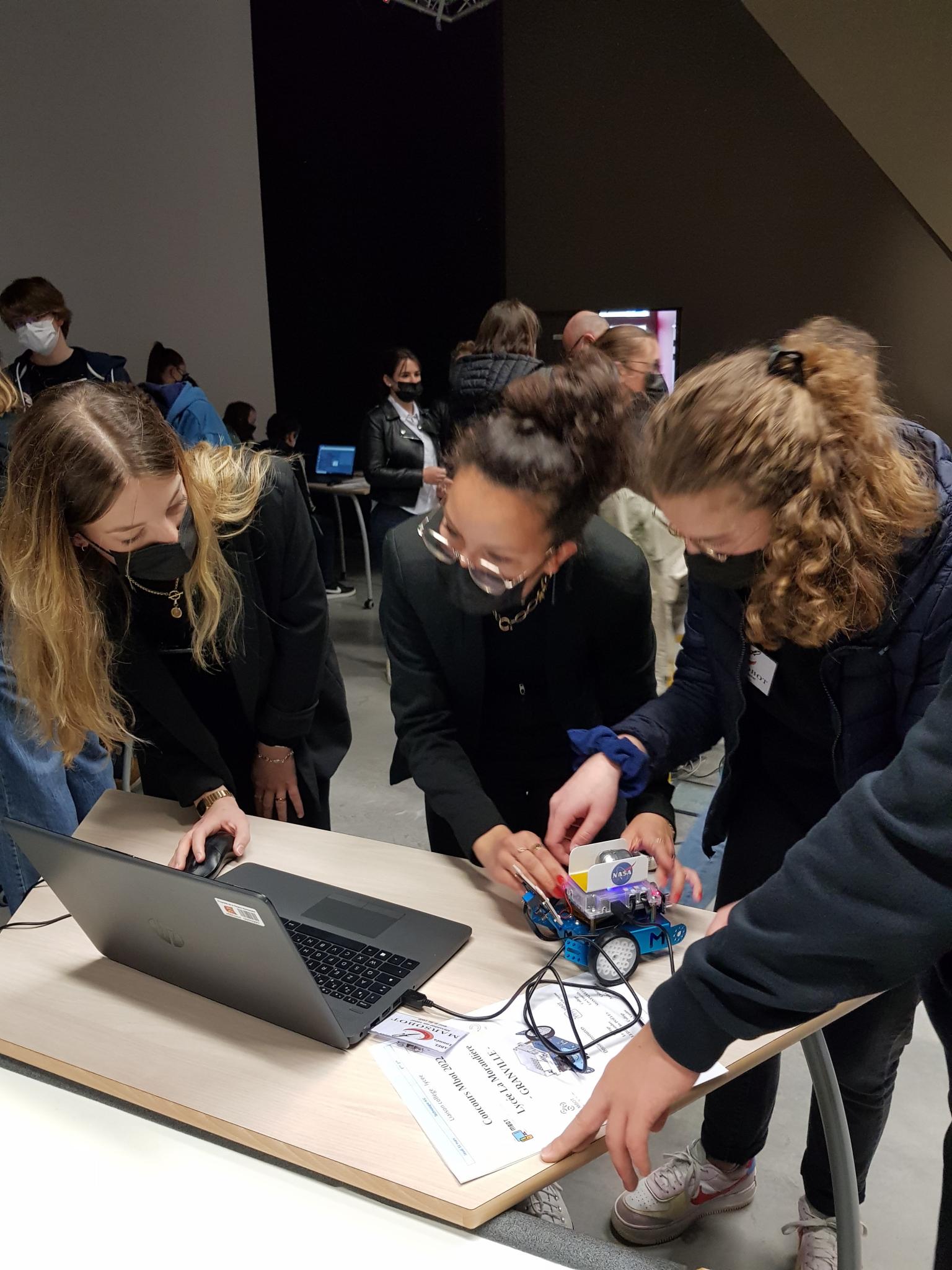20 équipes en compétition des différents collèges de la Manche. Une occasion pour les collégien.nes de venir visiter le lycée et de rencontrer des professionnels. Chaque équipe avait un référent BTS du lycée pour les accompagner. Notre équipe est arrivée 15ème.