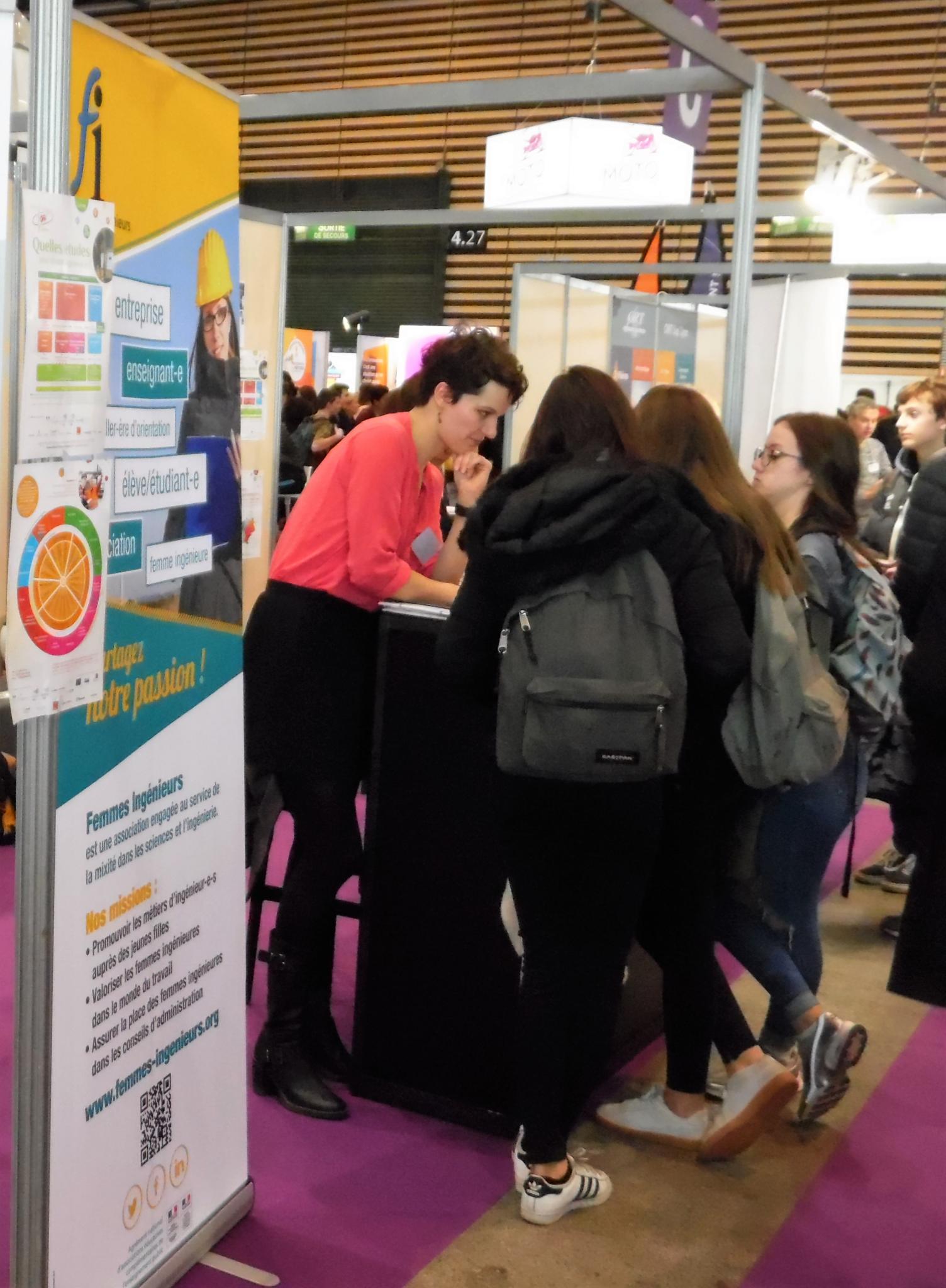 Le 22e Mondial des Métiers s'est tenu du 1er au 4 février 2018 à Eurexpo (Lyon). Les lycéen.ne.s et collégien.ne.s de la région ont pu y rencontrer les ingénieures de FI sur le stand d'OPE "Métiers Scientifiques et Techniques". Nos intervenantes ont répondu aux questions des élèves et de leurs parents sur les débouchés qu'offrent les sciences, les choix d'orientation, tout en partageant leur expérience et leur parcours personnel. L'affluence constante à notre stand prouve à quel point ces échanges sont précieux pour permettre aux jeunes, filles et garçons, de construire leur projet professionnel. L'interview de Céline Thiévenaz, déléguée régionale de FI en Rhône-Alpes: Les intervenantes de Femmes Ingénieures en Rhône-Alpes viennent, cette année encore, à la rencontre des collégien.ne.s et lycéen.ne.s dans leurs établissements! Elles répondent aux questions des jeunes, témoignent de leur parcours, racontent leur travail au quotidien et informent sur les choix d'orientation vers les métiers scientifiques et techniques. Les interventions de FI dans la région Rhône-Alpes sont programmées toute l'année! Pour nous solliciter, il suffit de nous contacter à l'adresse: interventions@femmes-ingenieures.org