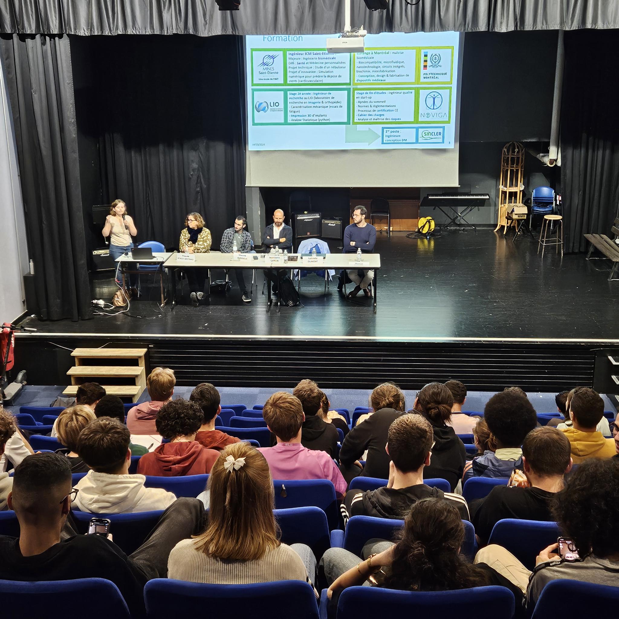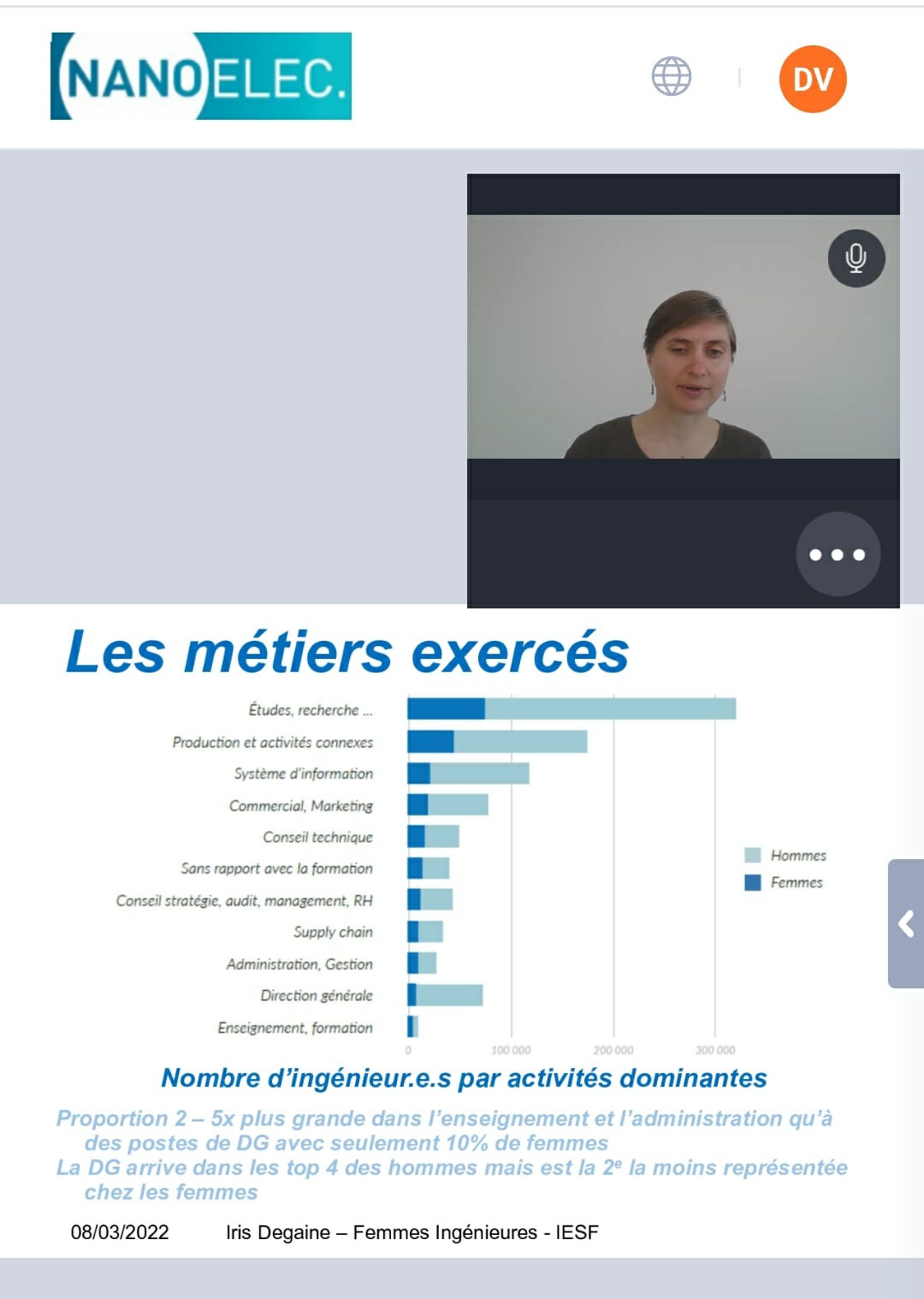 Le 21 novembre 2025, Muriel Dupont et Flore Gouaux étaient présentes à la Nuit de l'orientation Grenoble organisée par la CCI de Grenoble. pour représenter la filière microélectronique. Pour plus de mixité dans notre filière, rejoignez le groupe Femmes dans la tech / Isère Muriel Dupont, co-déléguée Femmes Ingénieures en région AURA (focus sur l'Isère et l'arc alpin) est sur le Forum des métiers à Alpexpo Grenoble le mercredi 8 octobre 2025 de 13h à 19h et le jeudi 9 octobre de 9h à 17h. L'inscription au forum est gratuite et ouverte à tous, sur place ou en ligne : http://https://www.grenoblealpesmetropole.fr/672-forum-des-metiers-2025.htm Déjeuner d'échange FTI38 du 25 septembre 2025 à Cap Berriat (venez avec votre déjeuner) Venez échanger sur les activités du collectif Femmes dans la tech en Isère FTI38) pour l'année 2025-2026, avec les relais FI en Isère et sur l'Arc alpin : Flore Gouaux & Muriel Dupont. Nous ferons un retour sur la session FTI38 de juin sur les kits pédagogiques et partagerons l'agenda des actions à venir, afin d'identifier des relais sur les différentes thématiques. BILAN DES INTERVENTIONS - Les bénévoles ont rencontré près de 250 jeunes de la région dans leurs établissements (collèges, lycées, prépas. L’expo photo La Science Taille XX Elles (Femmes & Sciences, CNRS, ENS Lyon) est toujours itinérante dans la région sur demande des collectivités et établissements scolaires. 8 MARS 2024: Journée “Sciences un métier de femmes!” avec Femmes & Sciences à l’ENS de Lyon: 400 lycéennes invitées à rencontrer une vingtaine de marraines scientifiques, techniciennes ou ingénieures... 26 JUIN 2024: En partenariat avec notre partenaire IRT-NanoElec (Grenoble) : participation à un webinaire sur le sujets des réseaux mixité d'entreprise. Lycée Etienne Mimard, Saint-Etienne - Octobre 2024 Crédits: Léah Touitou Depuis plusieurs années, la Journée internationale des femmes ingénieures #INWED est célébrée en juin, notamment par la société savante Ingénieur(e)s Canada et surtout la britannique Women’s Engineering Society. Cette année, Nanoelec et l’association Femmes ingénieures proposent de célébrer aussi cet évènement en France, à travers un webinaire sur les réseaux féminins dans les grandes entreprises. En nous rejoignant pour cet évènement en ligne, participez, vous aussi à mettre en lumière le rôle des femmes chez les ingénieur (e ) s !!! Vidéo 30 mars 2023: Participation à la journée "Science un métier de femmes" à l'INSA de Lyon avec Femmes & Sciences. 400 jeunes filles rencontrent des marraines chercheuses, ingénieures, techniciennes au cours de journée de conférences et dialogue en petits groupes. 12 avril 2023: "Connect'RTE: et si nos métiers te branchaient" (Meyzieu) organisé par notre partenaire RTE. Participation aux tables rondes à destination de jeunes et d'adultes en recherche d'emploi 23 juin 2023: Webinaire à l'occasion de la Journée Mondiale des femmes ingénieures organisé par notre partenaire IRTNanoELec: présentation des résultats de l'Observatoire des Femmes Ingénieures 22 octobre 2023: Séminaire Diversité du Bureau National des Elèves Ingénieurs, participation aux tables-rondes sur le racisme, le sexisme, l'homophobie. Sans oublier les bénévoles qui interviennent régulièrement auprès des élèves dans les collèges et lycées du Rhône, de la Loire... Le 10/03 2018, la ville d'Irigny (Rhône) organisait un évènement sur le thème des femmes et du numérique à l'occasion de la Journée Internationale des Droits des Femmes. Les écoles de la ville ont présenté des saynètes écrites sur le sujet, puis la journée s'est poursuivie avec une table ronde animée par Femmes Ingénieures et l'association lyonnaise LDigital. Cette initiative locale a permis de sensibiliser au-delà des seuls lycées et collèges. En effet, il est primordial de rendre les enjeux du numérique accessible au plus grand nombre: une transformation numérique menée seulement par un petit groupe de personnes ne saurait englober l'ensemble des problématiques d'aujourd'hui.