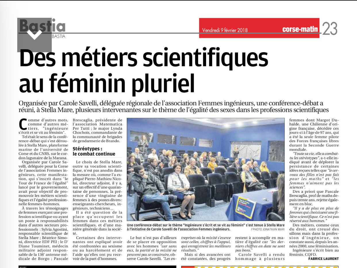 Carole Savelli, déléguée régionale Femmes Ingénieures en Corse organisait mercredi 7 février une conférence intitulée Ingénieure s'écrit et se vit au féminin.