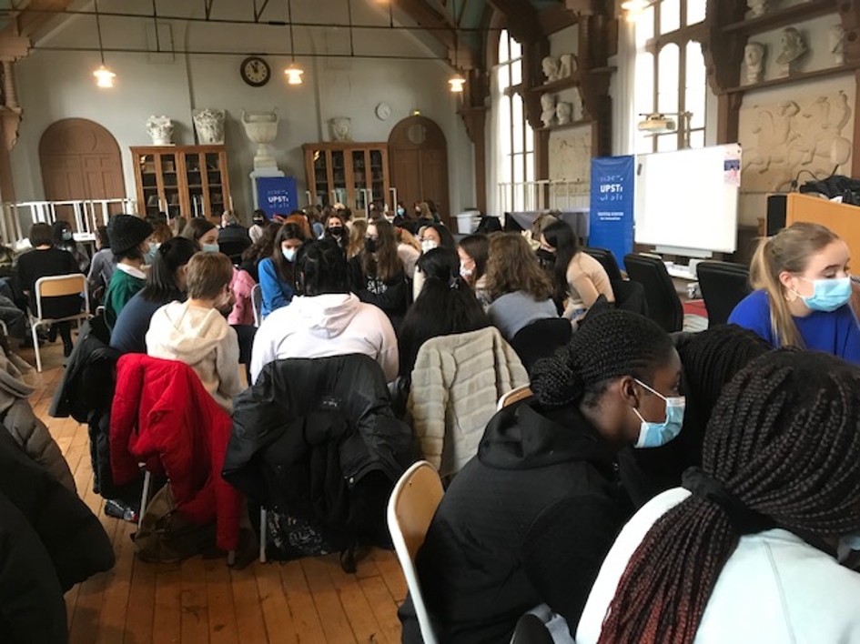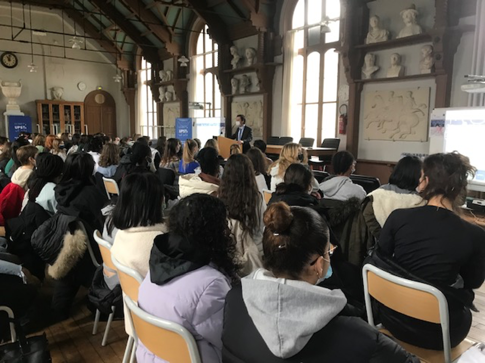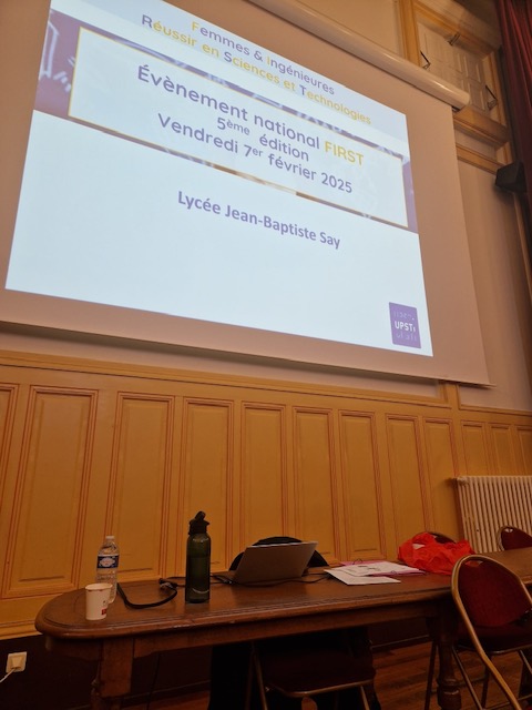Le 3 Février 2022, a l'invitation de notre partenaire UPSTI dans le cadre de son opération FIRST 2022 , nous étions présentes au lycée Chaptal pour témoigner , partager nos expériences devant plus de 120 jeunes filles en classe de seconde s'interrogeant sur les métiers scientifiques. Nombreuses questions très pertinentes lors des ateliers en petit groupe . Echanges riches pour toutes , merci à Monsieur le Proviseur Gateau pour son accueil.
