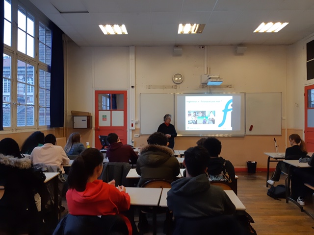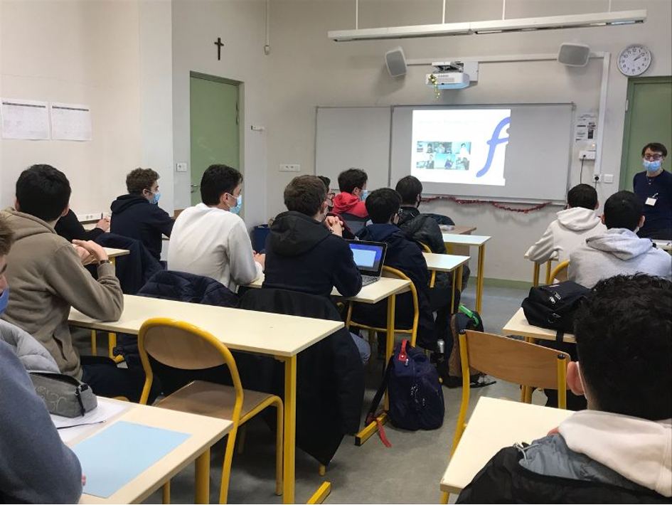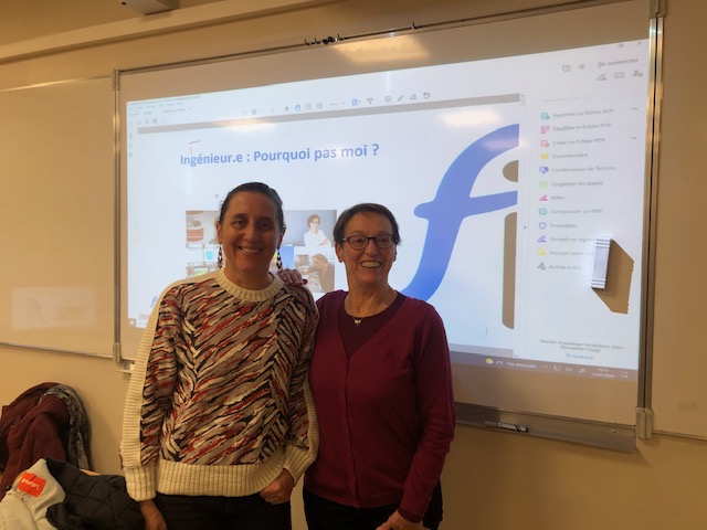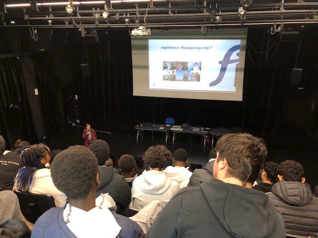 Le 17 Mars 2022, à la demande des étudiantes de l’école , face à une trentaine d’étudiants et étudiantes, trois intervenantes de FI ont témoigné et ont partagé leur parcours professionnel, leurs études et ont également prodigué quelques conseils et recommandations. Il y avait 50% de filles alors qu’elles représentent environ 25% dans l’école.