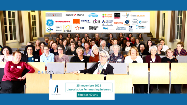 Le 25 Novembre 2022, pour célébrer les 40 ans de l'Association, nous nous sommes retrouvées à l'ISEP, école d’ingénieurs du numérique située à Issy les Moulineaux. Un peu d'histoire pour commencer et se rappeler qu'il a fallu près d'un siècle pour que l'ensemble des écoles d'ingénieurs ouvrent leurs portes aux jeunes femmes. Nos Présidentes, qui furent en exercice durant ces 40 ans, nous ont retracé les moments forts des actions de l'Association et son développement à l'international. Beaucoup d'émotions partagées durant cette rétrospective. 40 ans d'engagement, qui ont fait bouger les lignes, des relations constantes avec les pouvoirs publics, des collaborations étroites avec les associations et différents organismes qui partagent nos valeurs, des partenariats avec des entreprises qui nous soutiennent, de nombreuses interventions dans les collèges, lycées et écoles, et maintenant les Ingénieures femmes représentent 24% des Ingénieur.e.s. Mais vous l'avez compris, nous devons redoubler d'efforts pour continuer à promouvoir les métiers d'Ingénieures auprès des jeunes filles et rendre nos Ingénieures plus visibles dans l'entreprise et la société. Durant cette soirée, nous avons participé à une excellente animation d’improvisation théâtrale sur le leadership, brillamment animée par Impro2. On n'oubliera pas les patates, les carottes et les navets ! De nombreuses petites séquences qui mettent vraiment le doigt sur les comportements et comment les améliorer. Et pour finir, un bon moment de convivialité autour d'un cocktail qui a permis à de nombreuses invitées de se retrouver et partager des souvenirs ou des projets.