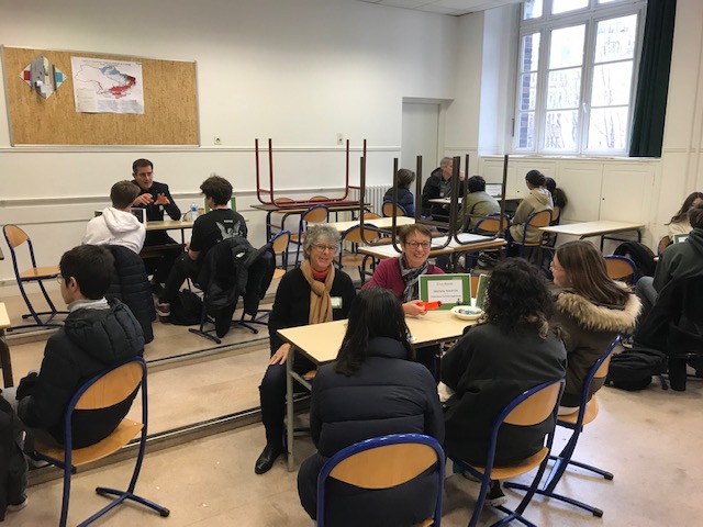 Excellent accueil par l’équipe du collège. L’événement était bien organisé, la plupart des élèves avaient préparé des questions et étaient intéressés. Nous avons rencontré environ 25 élèves en classe de 4eme, très peu de filles ( moins de 5 à notre grand regret). L’association remercie chaleureusement Catherine et Gwladys pour leur implication et temps consacré à partager leurs métiers et expériences avec les élèves.