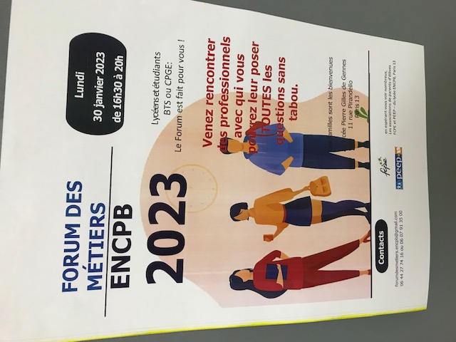 Le 21 janvier 2023, dans ce lycée de 1700 élèves , nous avons participé au Forum des Métiers. Très belle organisation avec 90 stands et de nombreux métiers et études abordés dans les secteurs suivants : santé, droit, lettres, BTP, STAPS, tertiaire, architecture, sécurité et Sciences et Technologies avec BTS, les prépas et écoles d’ingénieurs …