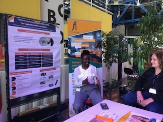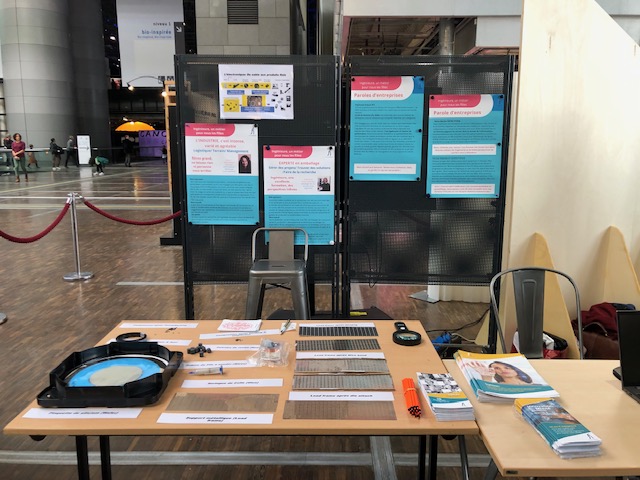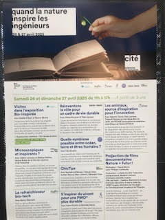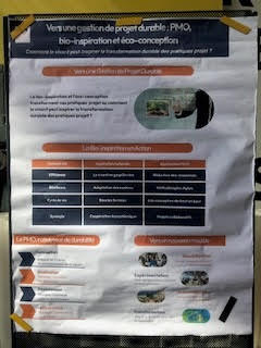 Basé sur son expérience, Fatma a conceptualisé l’intégration des critères environnementaux et leur déploiement dans la gestion des projets. Malgré le grand ciel bleu sur Paris, nous avons rencontré une trentaine de personnes , toutes intéressées par la thématique originale et innovante. Nous en avons profité pour faire un tour sur les autres stands. De belles innovations, très variées, toutes aussi intéressantes les unes que les autres, toutes basées sur l’observation de la nature, telle l’invention de la bande velcro, qui s’est inspirée du comportement d’une plante ou le design du tgv japonais qui lui s’est inspiré des plongeons du Martin pêcheur. Et bien d’autres sujets ….
