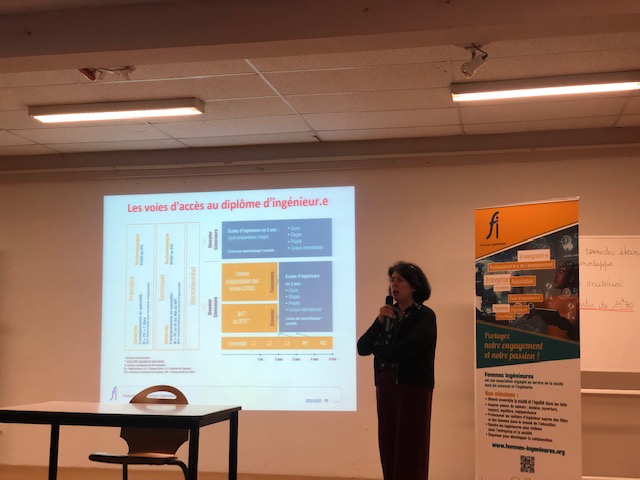 Le 31 mars 2022, dans le cadre du Forum des Métiers en lien avec l’association des Parents d’élèves, nous sommes intervenues afin de partager les études à réaliser pour devenir Ingénieur , les différents secteurs dans lesquels exercent les Ingénieurs, la diversité des activités dans la journée et tout au long de la carrière , nos salaires en mettant l’accent sur l’autonomie financière que ce métier procure .