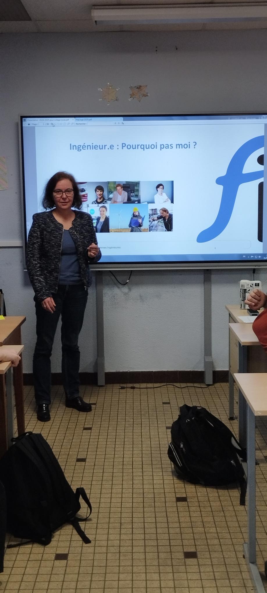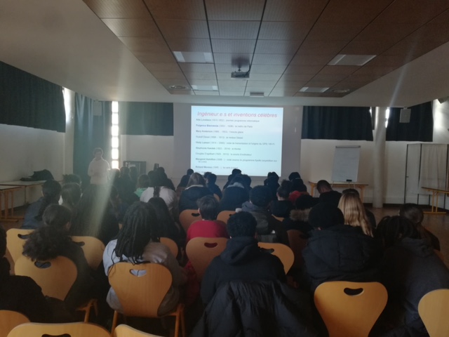 Le 18 Janvier 2022 , nous sommes intervenues auprès de 180 élèves de terminales générale et STL . Nous avons témoigné sur notre parcours et avons largement échangé sur nos activités , les secteurs d’activité ou les ingénieurs sont présents . Ne nombreuses questions sont posées quand aux études à effectuer et les différentes écoles , afin de poursuivre dans la voie de la recherche ou les études d’ingénieurs.