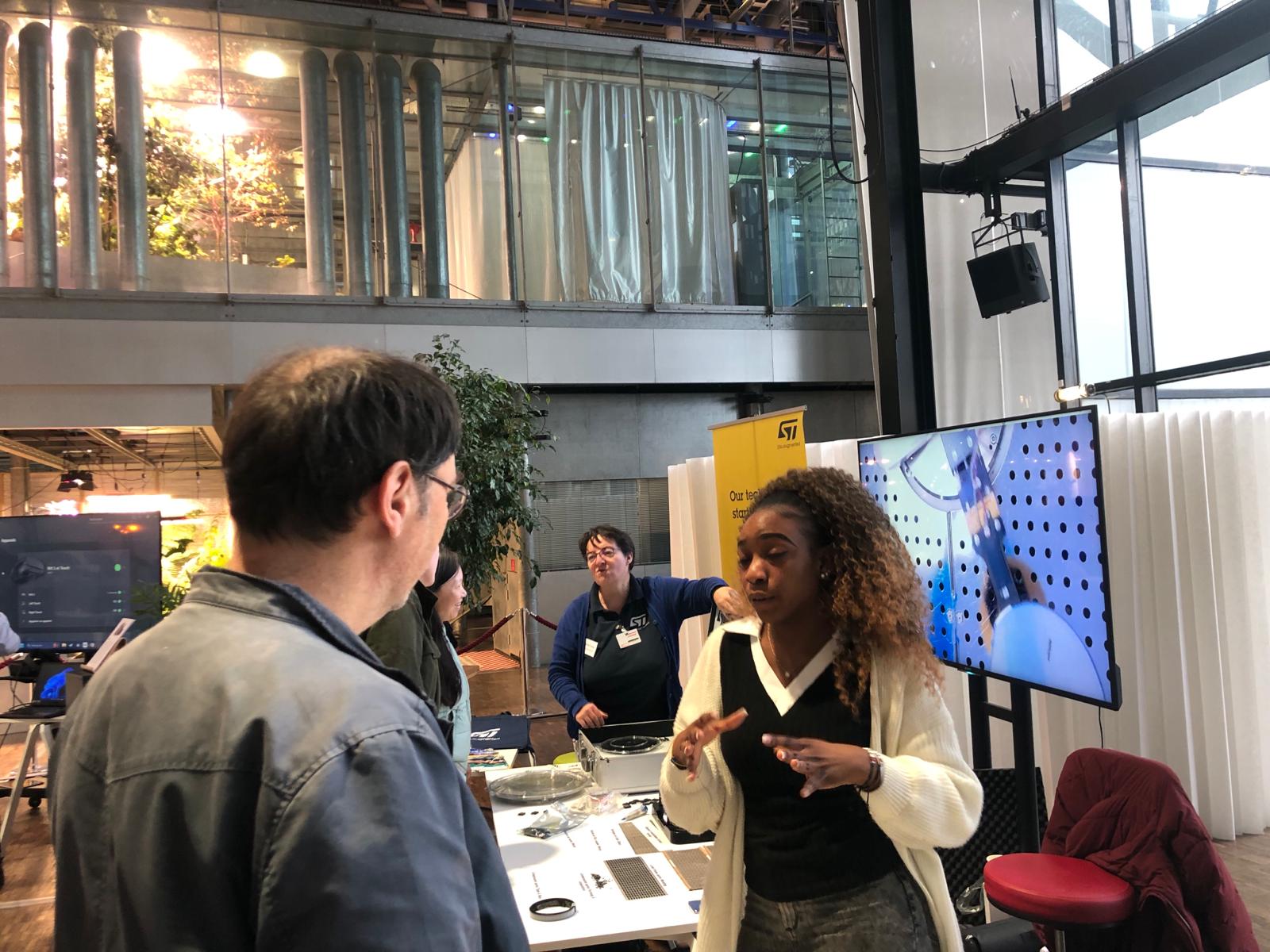 - présentation du Fab-Lab, qui permet de « bricoler » ou de débugger les cartes électroniques qu’on trouve dans beaucoup d’objets qui nous entourent : smartphone, voiture, radio, médical etc …Les Ingénieurs de ST ont expliqué le fonctionnement, et ont mis en avant comment cet espace est un atout pour l’innovation et le développement de projets très concrets .