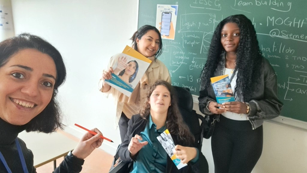 Samedi 22 novembre 2025, Fatima BAKHTI, Présidente de l’Association FI, accompagnée de Hiba TABDA, ont participé au Forum des Métiers d'Orsay/Paris Saclay organisé par le Rotary Club. De nombreux échanges avec des lycéennes et lycéens pour expliquer les différentes possibilités d’études, montrer la diversité des parcours d’ingénieures et donner aux jeunes des modèles auxquels s’identifier. Bravo aux organisatrices et organisateurs ! Et aussi au intervenantes pour leur énergie !