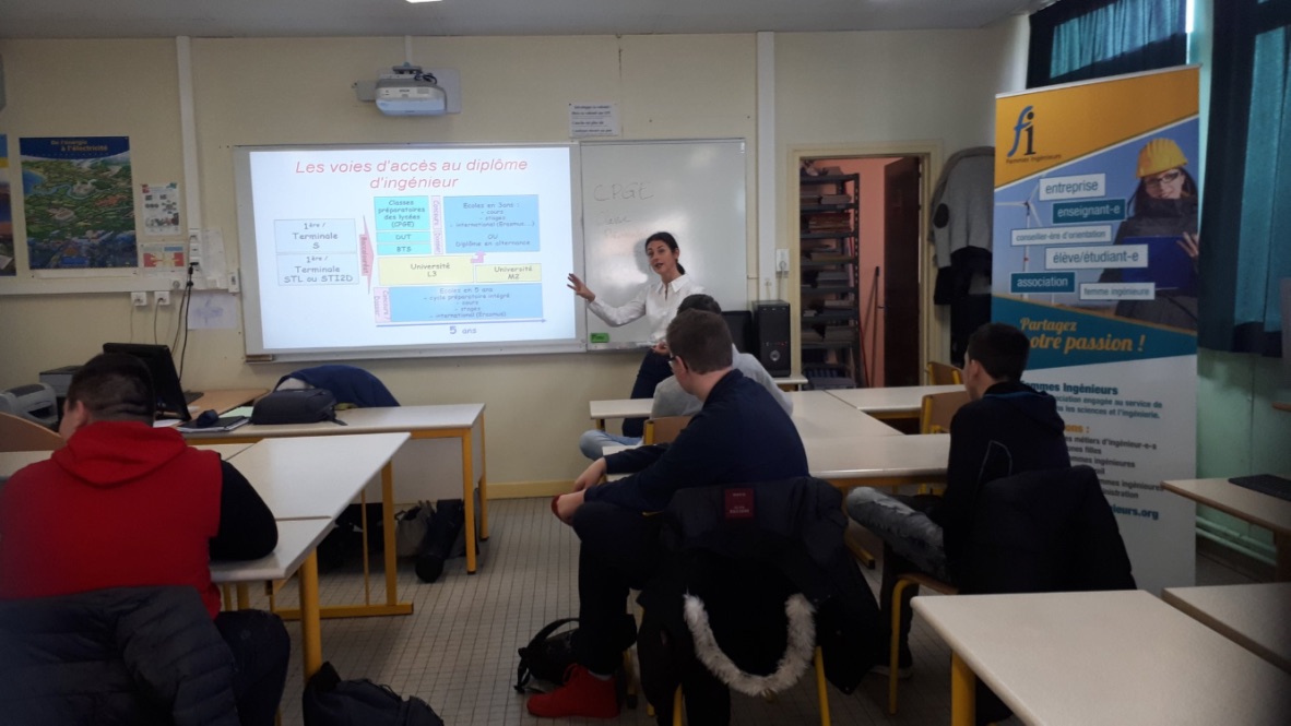 C'est une centaine de collégien.ne.s qui ont découvert ce que font les ingénieurs au travers des témoignages de cinq d'entre nous. Les questions des élèves ont montré l'intérêt de ces présentations pour qu'ils/elles puissent ne pas se fermer de porte lors de l'orientation sous l'effet des stéréotypes de sexe/genre.