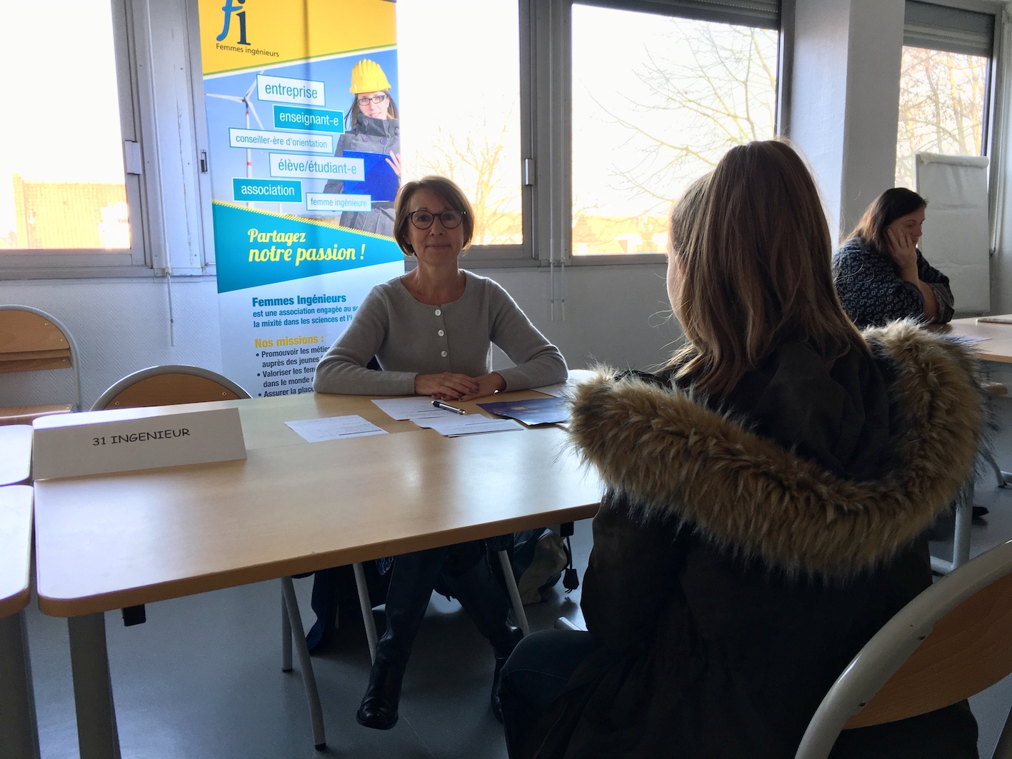 Femmes Ingénieures représentée par Isabelle Boullery a participé au speed dating des métiers du Collège Victor Hugo de Somain pour témoigner auprès des élèves de troisième que le métier d'ingénieur.e peut s'exercer au féminin.