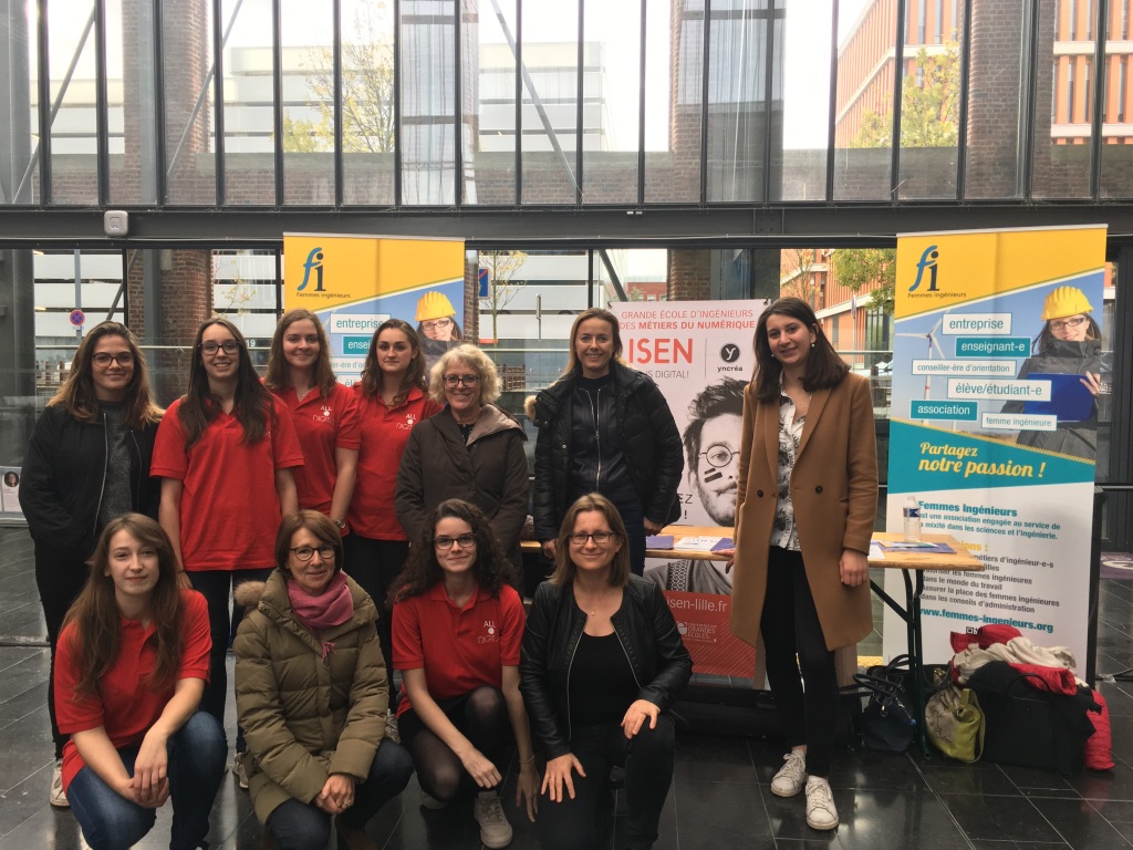 Femmes Ingénieures y a tenu un stand au côté d’autres partenaires: IBM, CORIF, Rectorat de Lille, RTE, Wordline, OVH, Showroom privé, Décathlon, Caisse d’Epargne, INRIA,…avec la présence de la Déléguée régionale Droits des Femmes Caroline Plesnage.