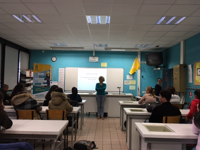 Vendredi 24 mars, Isabelle Hennebique et Isabelle Boullery ont présenté à 2 classes de 3ème du collège Pierre Mendes France de Tourcoing le métier d'ingénieur.e à l'invitation de leur professeur de physique.