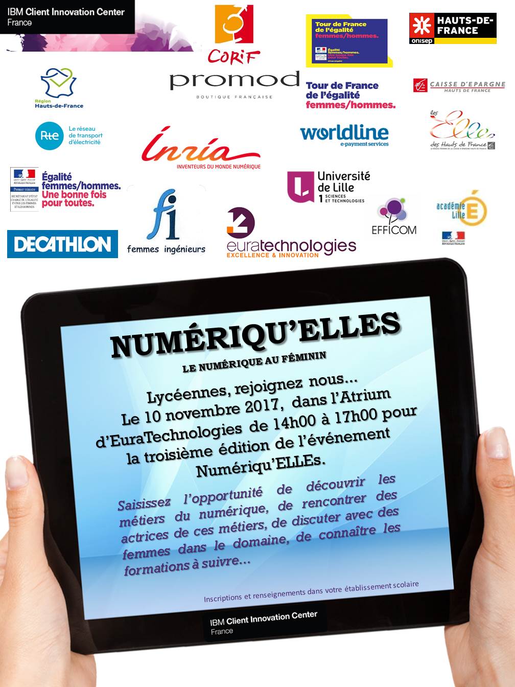 La 3ème édition de Numériqu'elles aura lieu le 10 novembre prochain à Euratechnologies à Lille. 500 collégiennes et lycéennes sont attendues. Elles pourront découvrir les métiers du numérique au travers de démonstration, de jeu, de présentation et bien sûr de témoignages de femmes ingénieures exerçant dans ce secteur d'activités;