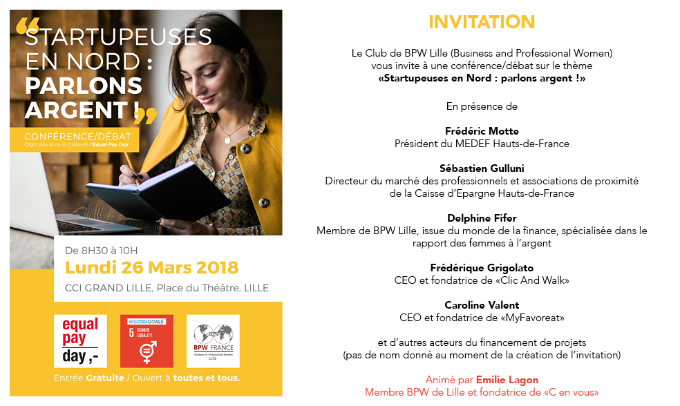 Pour combattre un tabou bien féminin, BPW Lille vous invite à la conférence "Startupeuses en nord : parlons argent" à l'occasion de l'Equal Pay Day !